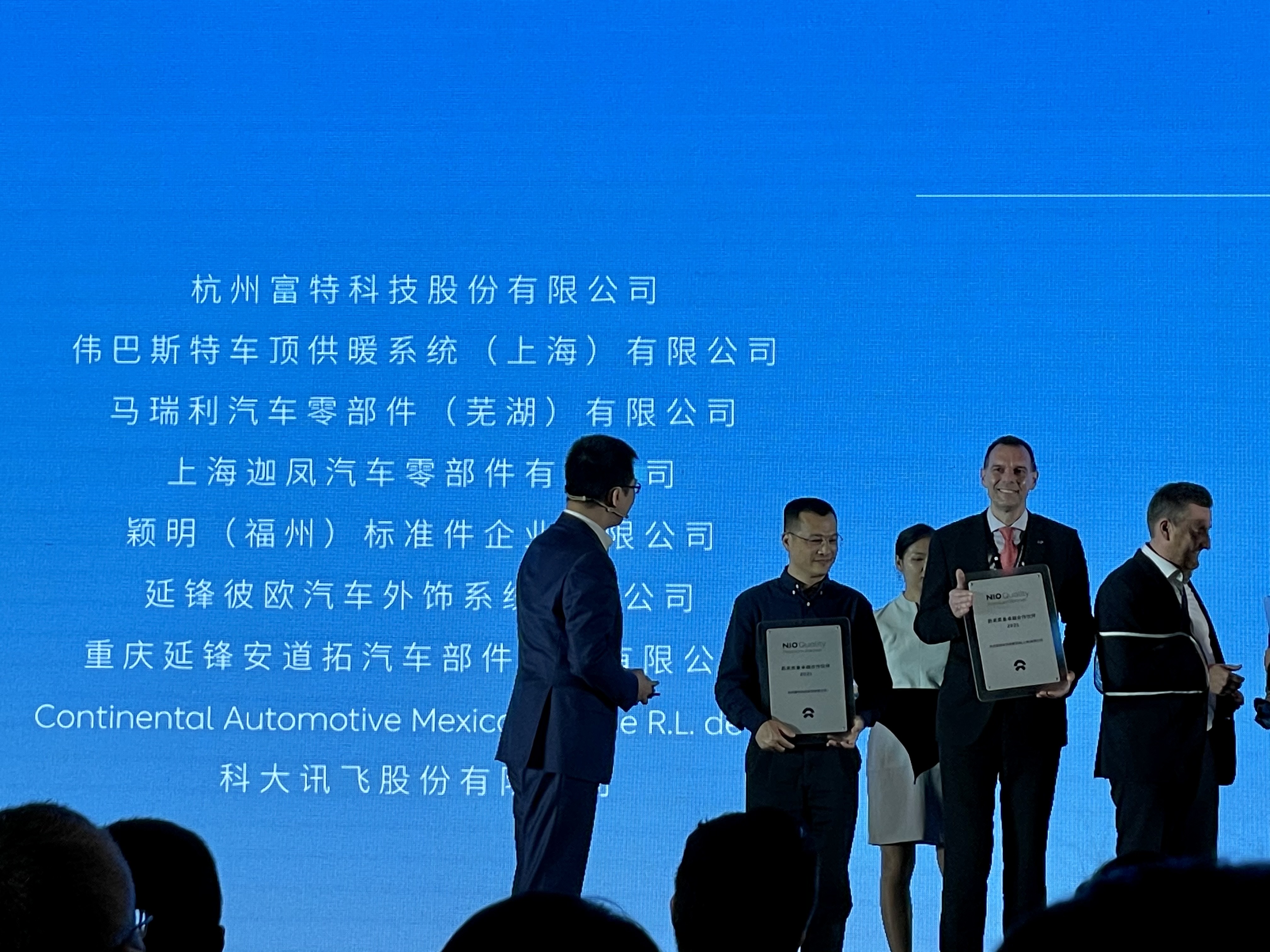 大會(huì)現(xiàn)場,蔚來汽車執(zhí)行副總裁沈峰先生,親自為富特科技頒發(fā)了NIO Quality Premium Partner(NQPP蔚來質(zhì)量卓越合作伙伴獎(jiǎng)項(xiàng)),表達(dá)了對(duì)富特科技產(chǎn)品的巨大信任和肯定。